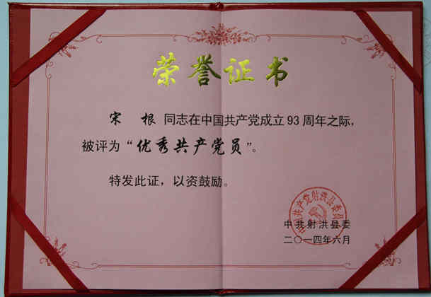 宋根同志被評為射洪縣優(yōu)秀共產(chǎn)黨員