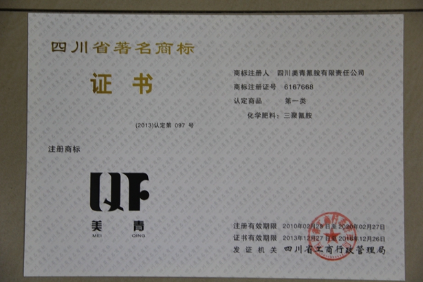 “美青”商標(biāo)喜獲2013年度四川省著名商標(biāo)