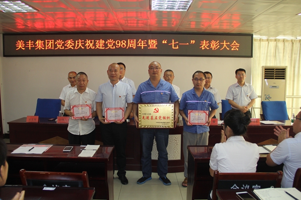 2019年7月1日上午,美豐集團(tuán)在美青化工生產(chǎn)大樓二會(huì)議室召開慶祝建黨98周年暨“七一”表彰大會(huì)。公司黨委書記、總經(jīng)理任國建,黨委委員、副總經(jīng)理謝安,黨委委員、副總經(jīng)理何琳,黨委委員、總會(huì)計(jì)師李旭東出席了會(huì)議。會(huì)議由黨委委員、總經(jīng)理助理張鵬主持。