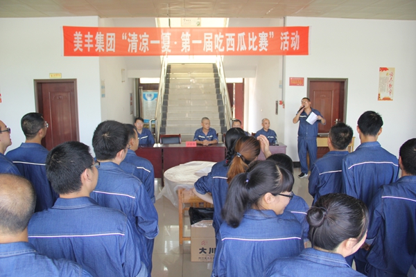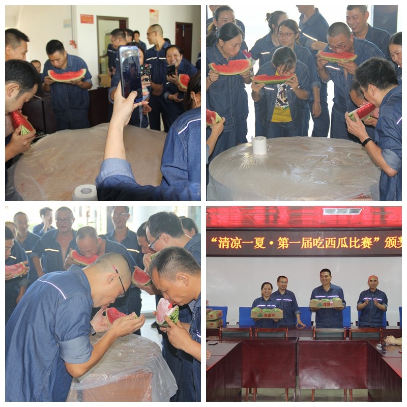 8月23日下午15時(shí),美青化工生產(chǎn)大樓大廳內(nèi)人頭攢動(dòng),熱鬧非凡。公司黨委、工會(huì)、團(tuán)委為了在炎炎夏日豐富員工生活、緩解工作壓力,為連續(xù)幾周冒酷暑、戰(zhàn)高溫的一線員工帶去絲絲涼意,“清涼一夏·第一屆吃西瓜比賽”活動(dòng)在此舉行。公司領(lǐng)導(dǎo)任國建、宋根、謝安、李旭東、張鵬出席活動(dòng)。